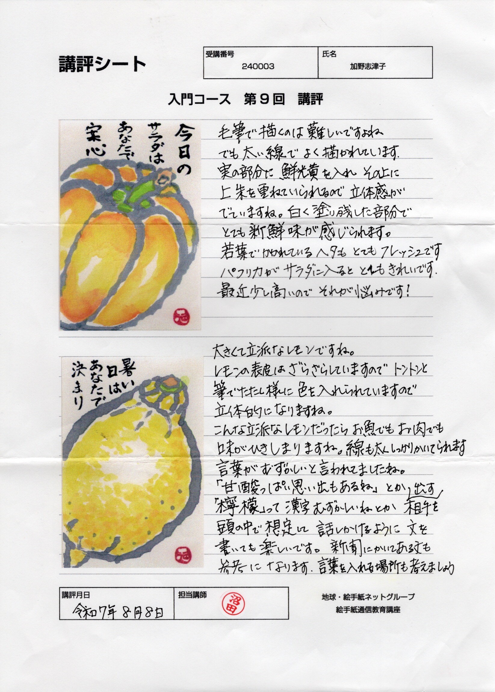 240003-加野志津子-第9回-沼田先生-講評シート